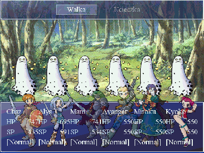 Screen2.png A oto screen z gry przykładowej, która posiada możliwość powiększania drużyny do sześciu postaci. Oryginalna gra mojego autorstwa może już niedługo pojawić się na www.rpgmaker.pl. Grę zrobiłem w RPG Makerze XP. Paleta oryginału 3 bajty, wrzucone 1. |
